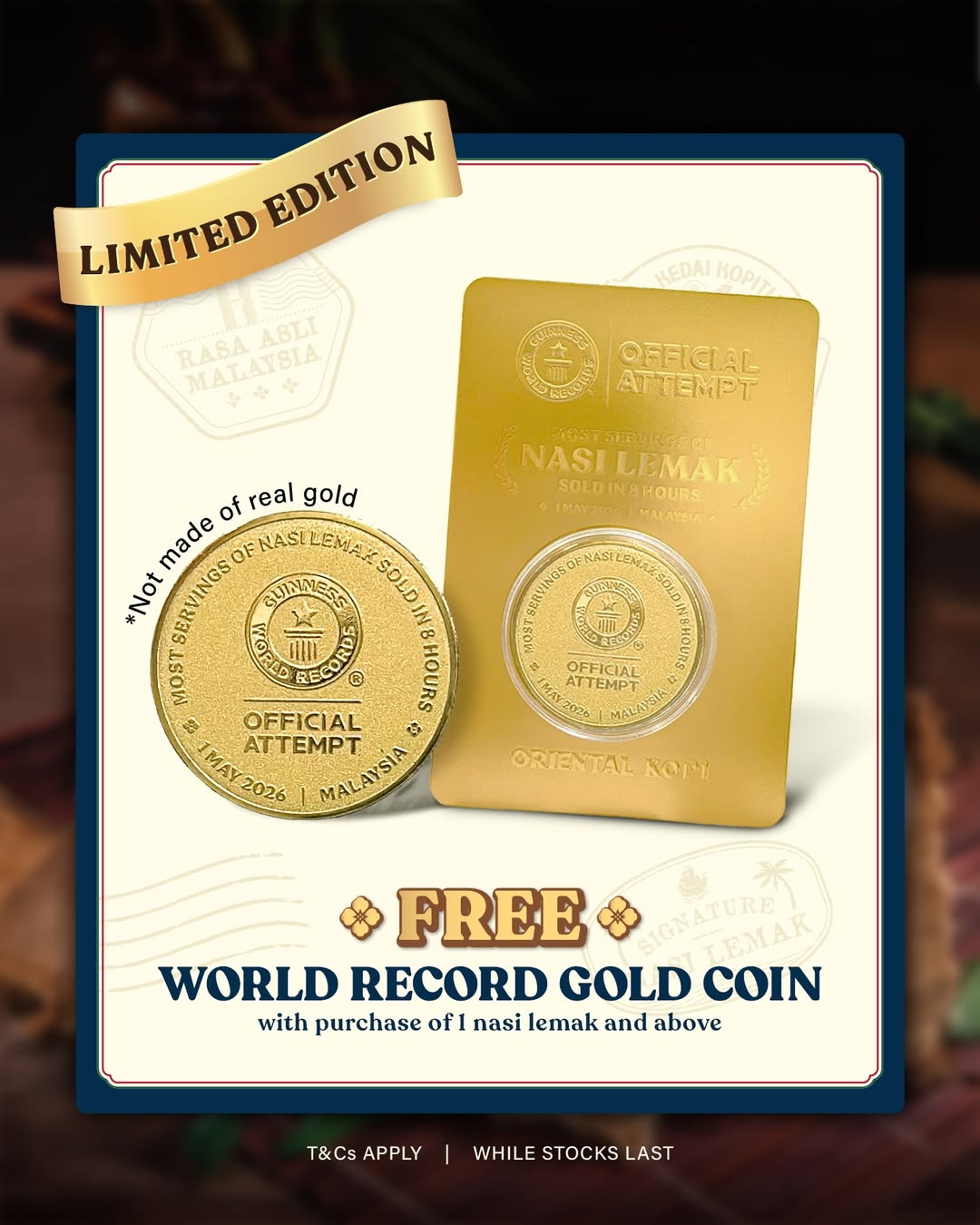 To encourage Malaysians to join in, each nasi lemak set will be offered at a special price of RM9.90, making it easy for everyone to take part in the record-setting attempt. Beyond just enjoying a good meal, visitors will also receive a limited-edition commemorative gold coin (while stocks last), created specially for the occasion.