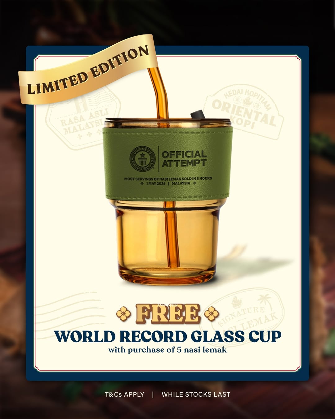 Malaysia’s most beloved comfort food is stepping into the global spotlight this Labour Day. Homegrown favourite Oriental Kopi is set to attempt a Guinness World Records title for the “Most Servings of Nasi Lemak Sold in 8 Hours”, and the public is invited to be part of this historic moment.