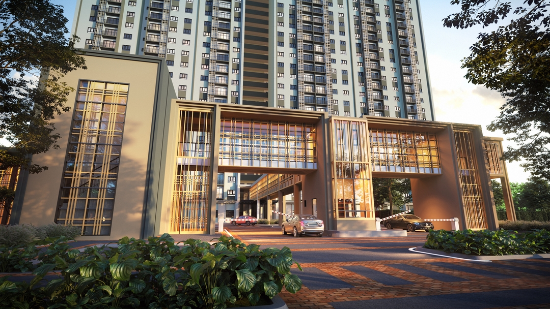 The car park is situated behind the condominium, connected by a bridge. Each car park podium (3+3) is equipped with a lift too!